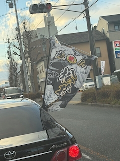 おめでとう🍾御座います㊗️ 熱田の通り通ったら見かけた新成人の旗を添えて