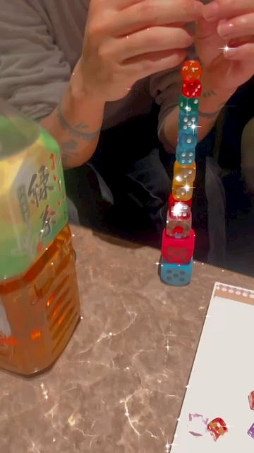こんにちは! ウェイでやったこの🎲のゲームおもろかった〜 まだこれ綺麗に積んでるけど形が変わったのとか人にあげるとかでなかなか難しい( ˘•ω•˘ ) 絶対テーブル揺らすな‼️ってあの雰囲気もまた笑えたわ キャップ20になった時に負けなくてほんっとに良かった🥰笑 あれ、またやりたい🎶 さ、今日もいまっす✋ では!